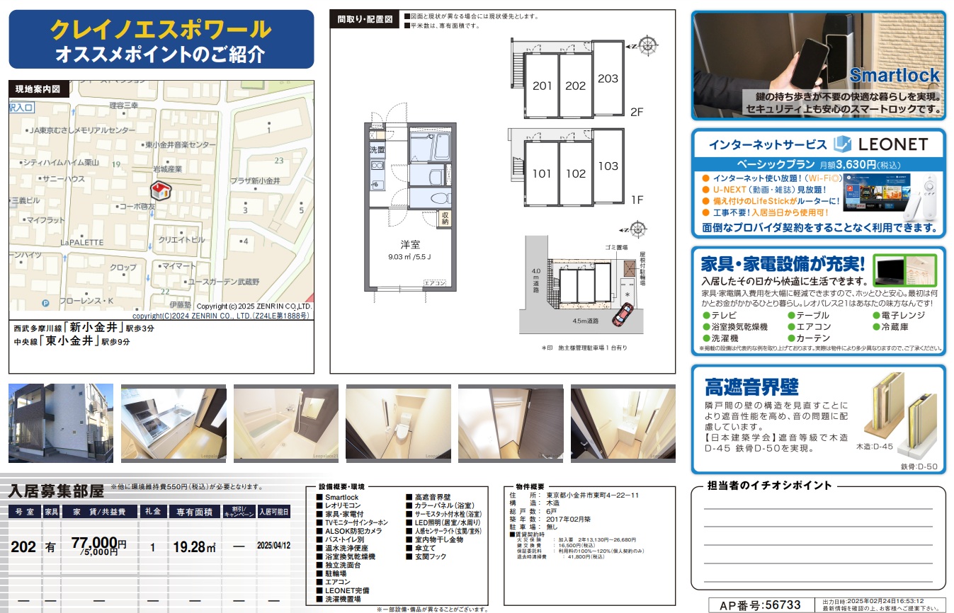 中央線/東小金井駅 徒歩9分設備 浴室廁所分開、浴室通風乾燥機、附家具及家電、LEONET(寬頻)、帶電視顯示器的對講機、溫水洗淨便座、城市煤氣、空調、2樓以上