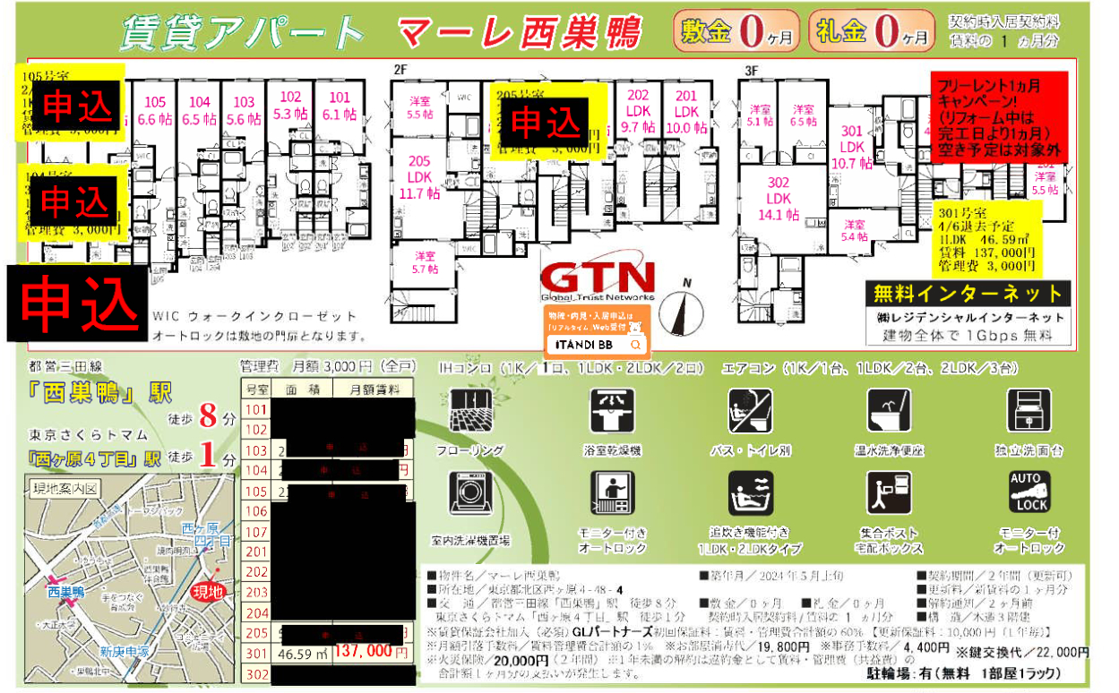 Description: 賃料: 8.1万円/管理費: 3,000円敷金: なし/礼金: なし交通:Show all description都営三田線 西巣鴨駅 徒歩8分東京さくらトラム(都電荒川線) 西ヶ原四丁目駅 徒歩1分設備・詳細:系統廚房 / IH 爐