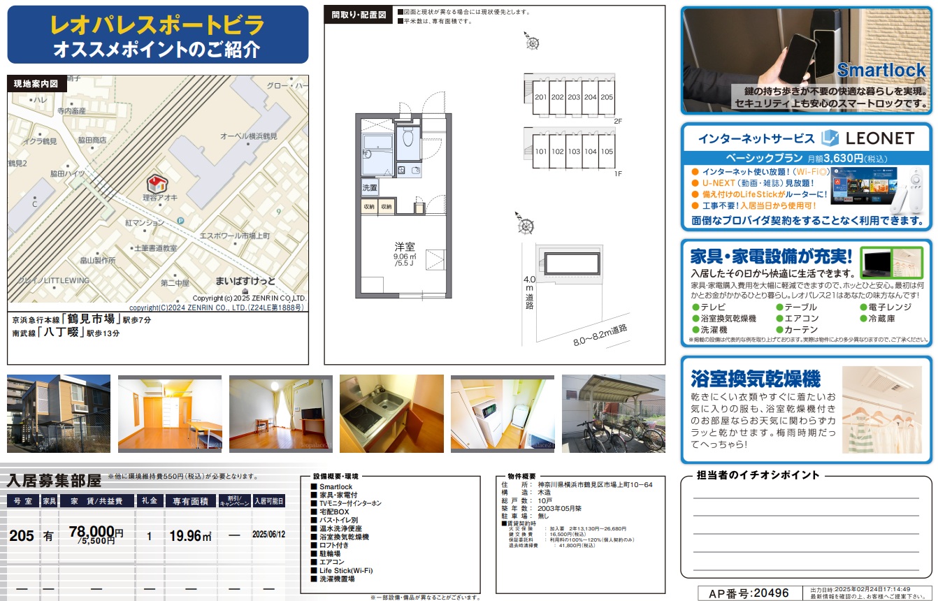 設備 浴室廁所分開、浴室通風乾燥機、附家具家電、LEONET(寬頻)、閣樓、宅配箱、帶電視顯示器的對講機、空調、2樓以上