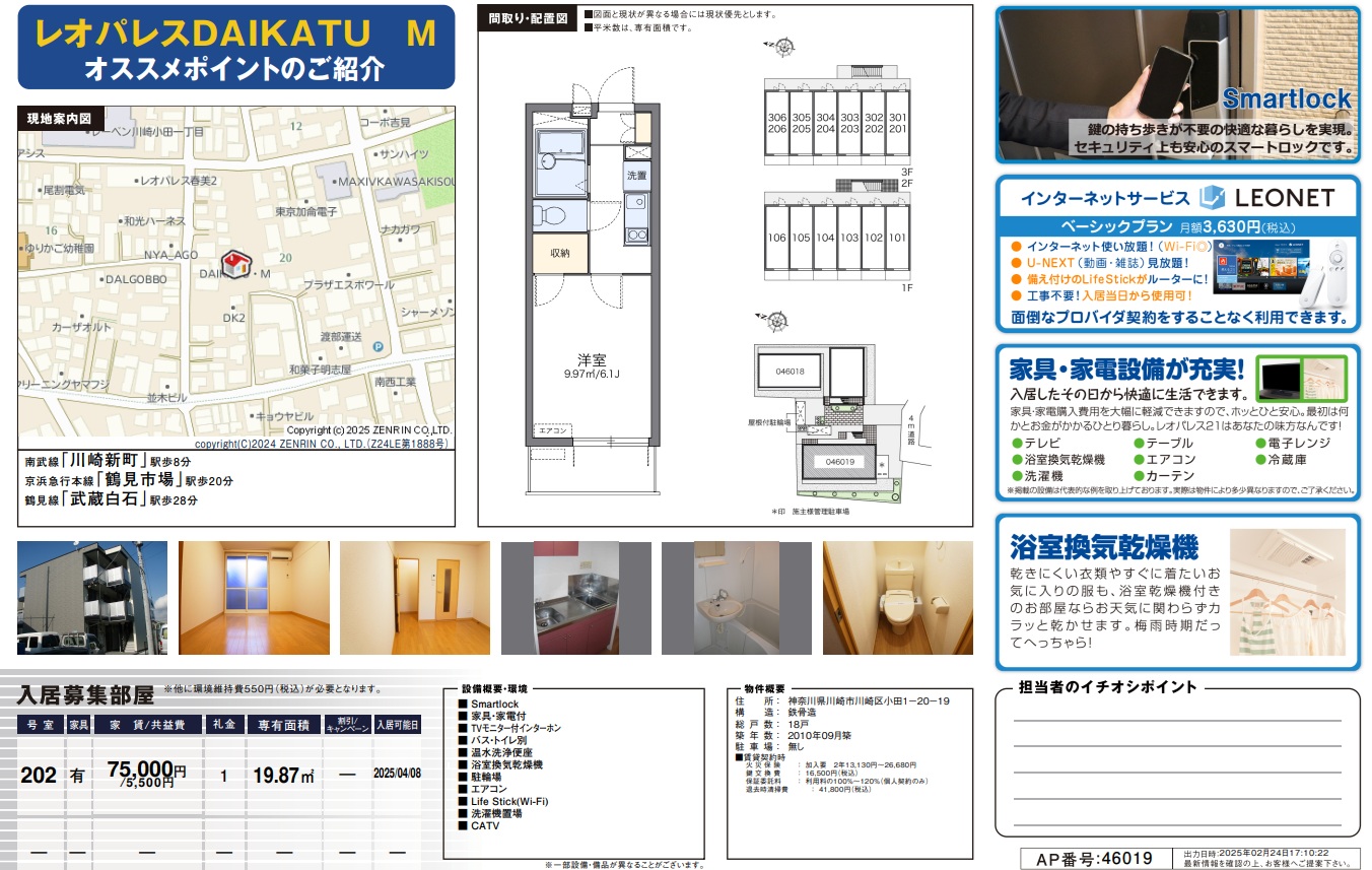 設備 浴室廁所分開、浴室通風乾燥機、附家具及家電、LEONET(寬頻)、帶電視顯示器的對講機、溫水洗淨便座、有線電視、空調、2樓以上