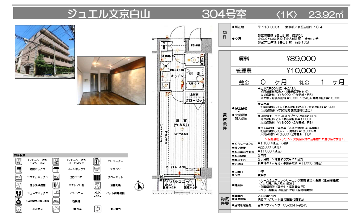 都営三田線 白山駅 徒歩5分