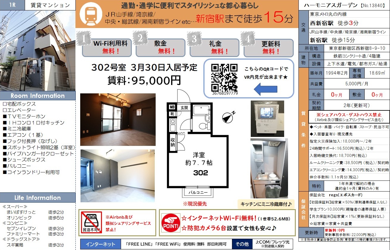 Description: 賃料: 9.5万円/共益費: 5,000円敷金: なし/礼金: なしShow all description交通:東京メトロ丸ノ内線 西新宿駅 徒歩3分JR山手線 新宿駅 徒歩9分JR中央線(快速) 新宿駅 徒歩9分建物設備:電梯/IH 爐/ 免費網路
