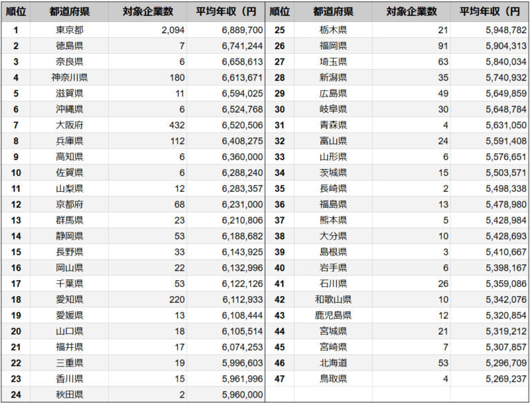 都道府県別の平均年収ランキング、1位は東京都で688万9700円、2位は神奈川でも大阪でもないあの地方県