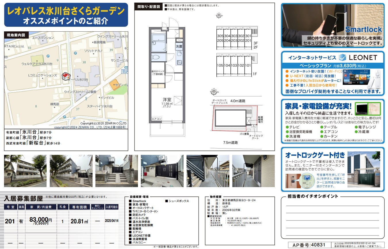 西武有楽町線/新桜台駅 徒歩14分設備 自動門鎖、浴室與廁所分開、浴室通風乾燥機、附家具與家電、LEONET(寬頻)、帶電視監視器的對講機、溫水洗淨便座、城市煤氣、空調、二樓以上