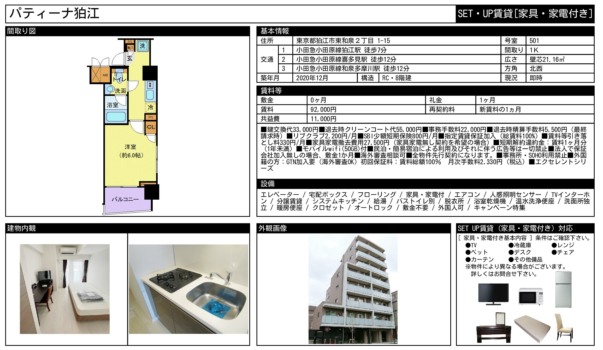 Description: 賃料: 9.2万円/共益費: 11,000円敷金: なし/礼金: 1ヶ月交通:Show all description小田急線 狛江駅 徒歩7分小田急線 喜多見駅 徒歩12分建物設備:
