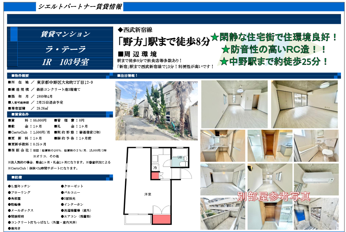 Description: 賃料: 8.8万円/共益費: なし敷金: 1ヶ月/礼金: 1ヶ月Show all description交通:西武新宿線 野方駅 徒歩8分設備・詳細:停車場 / 可作為辦公室使用 / 辦公室使用諮詢
