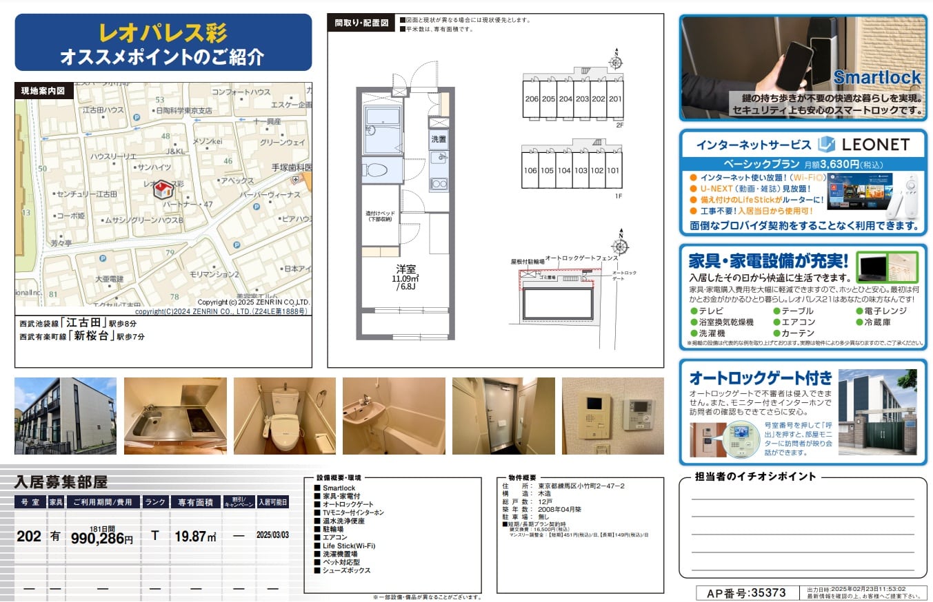 西武有楽町線/新桜台駅 徒歩7分設備 自動鎖、家具及家電、LEONET(寬頻)、對講機附電視監視器、馬桶座附溫水坐浴盆、城市瓦斯、空調、允許攜帶寵物、二樓或以上