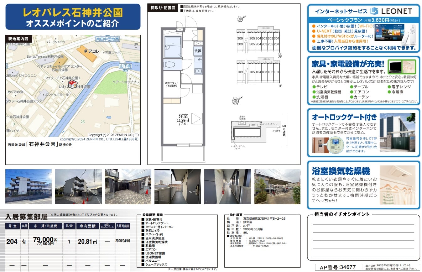 Show all description交通 西武池袋線/石神井公園駅 徒歩9分 設備 自動門鎖、浴室與廁所分開、浴室通風乾燥機、附家具與家電、LEONET(寬頻)、帶電視監視器的對講機、溫水洗淨便座、城市煤氣、空調、二樓以上