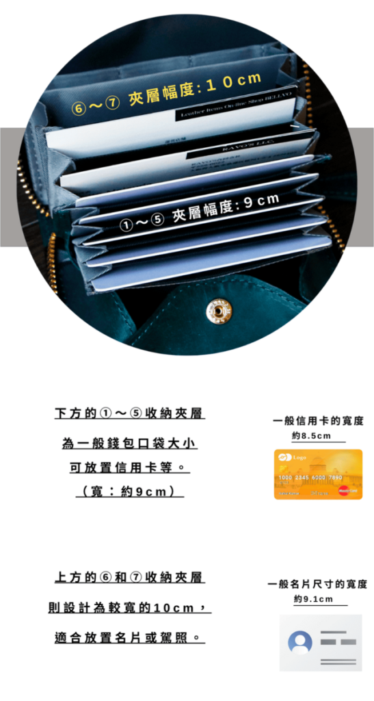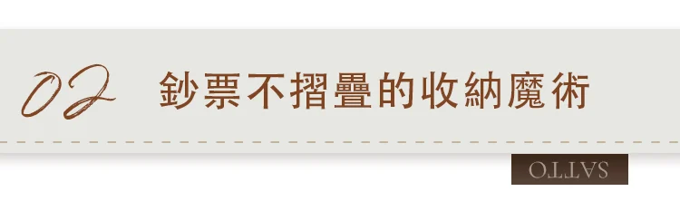透過在卡片口袋和零錢袋下方創造空間,確保有足夠的鈔票收納空間。
