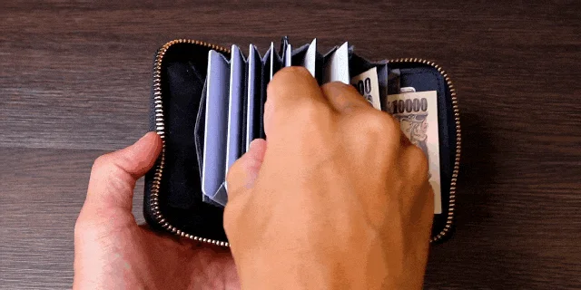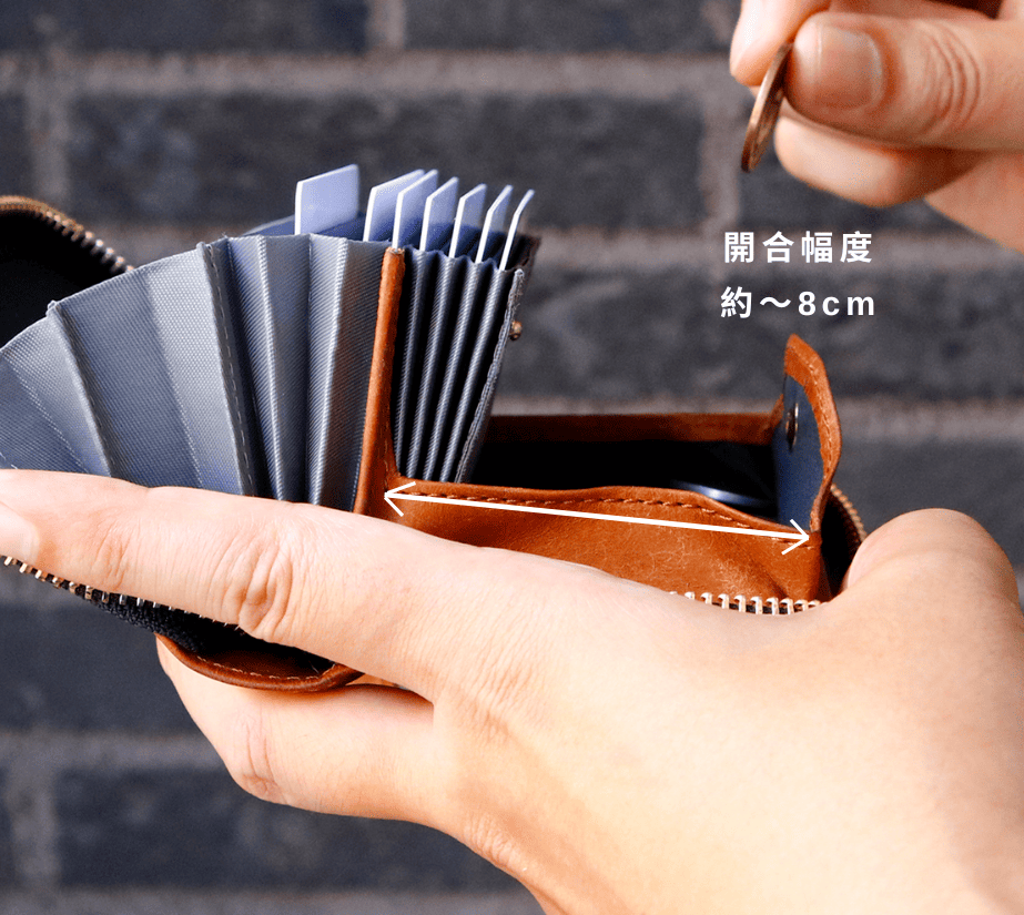 因此,當錢幣收納至皮夾時,不會滯留而是自然地滾到底部。