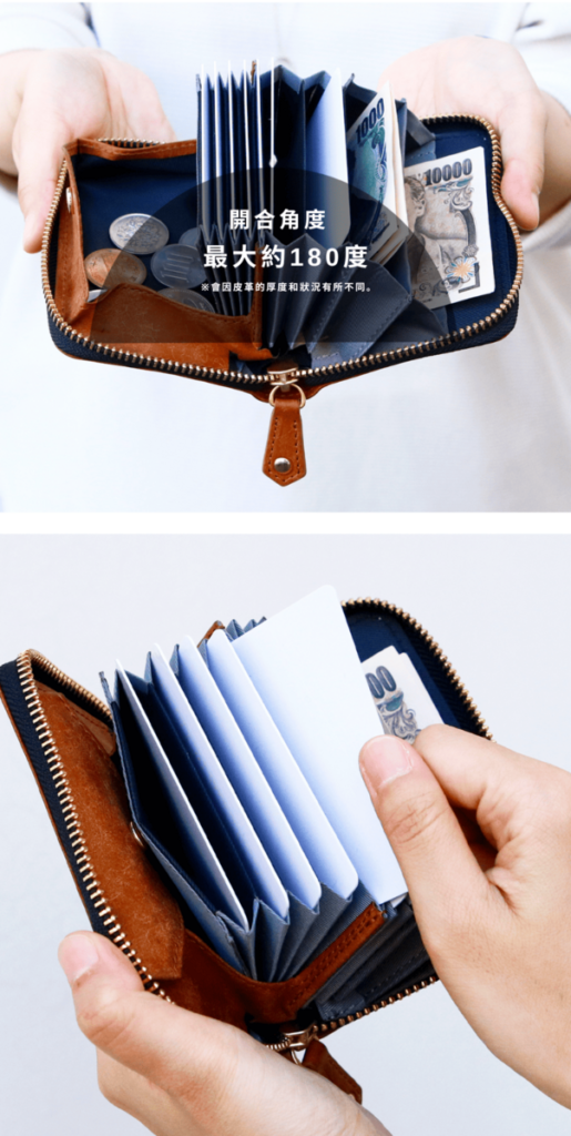 接近180度的開口角度,一目了然地看到所有收納的鈔票和卡片。