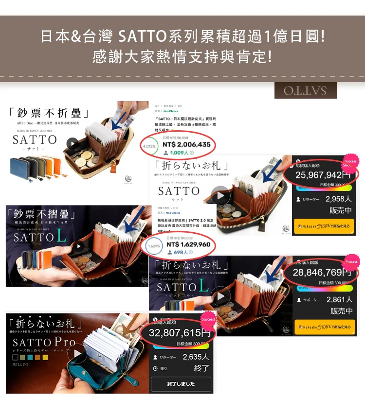 SATTO系列的魅力在於擁有迷你皮夾中前所未有的驚人收納量,