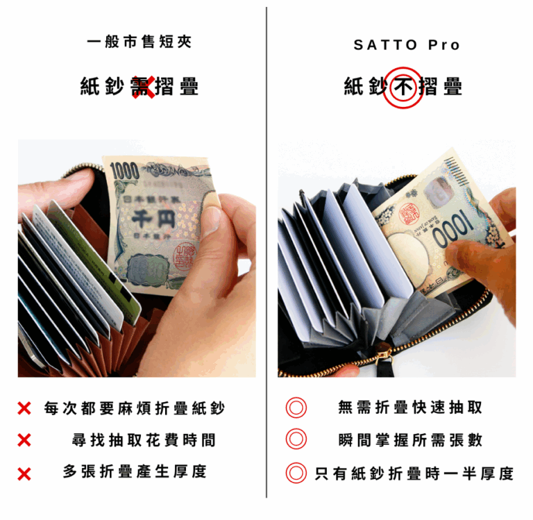 -與傳統迷你皮夾比較- 無需折疊即可收納的優點